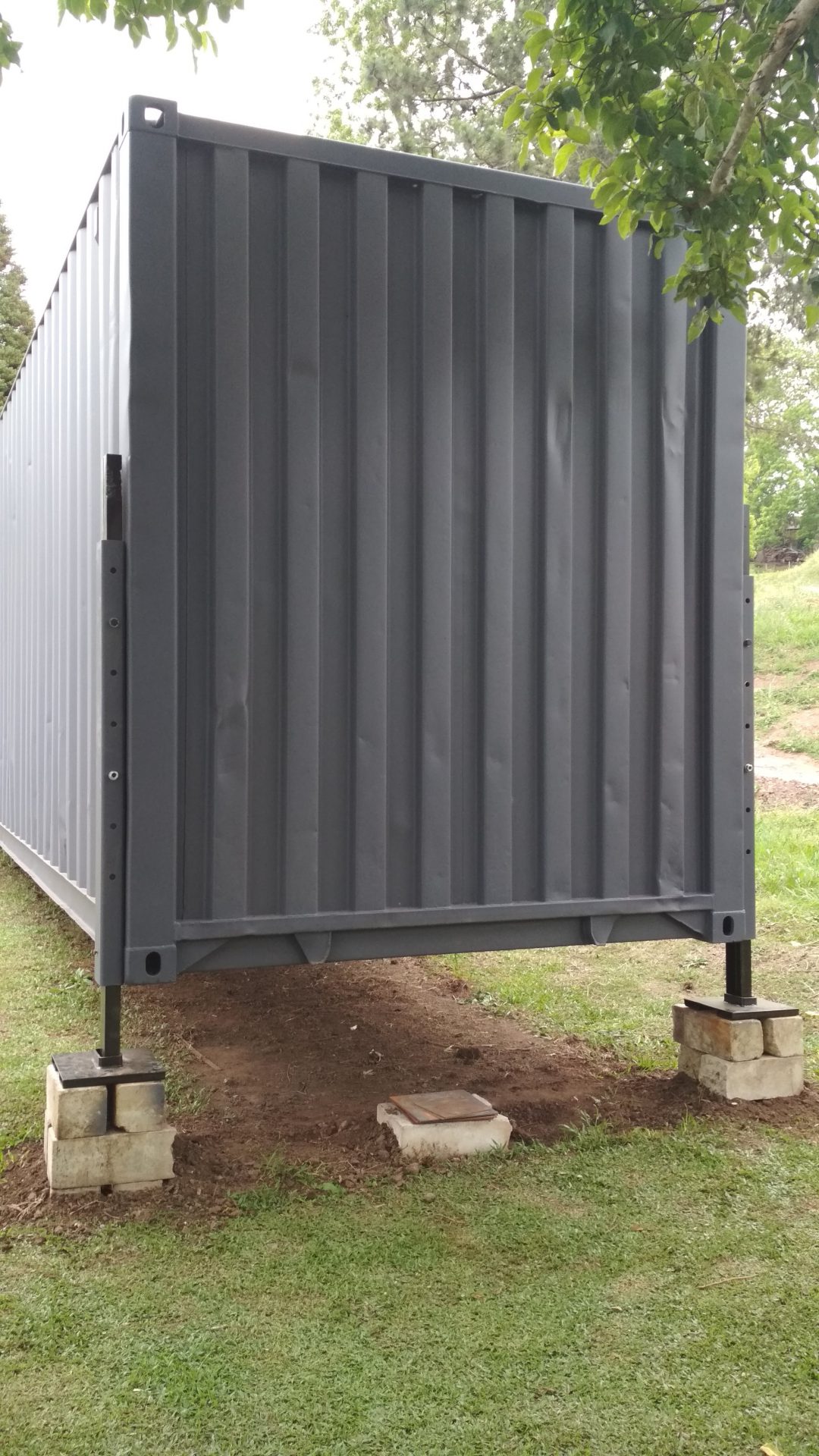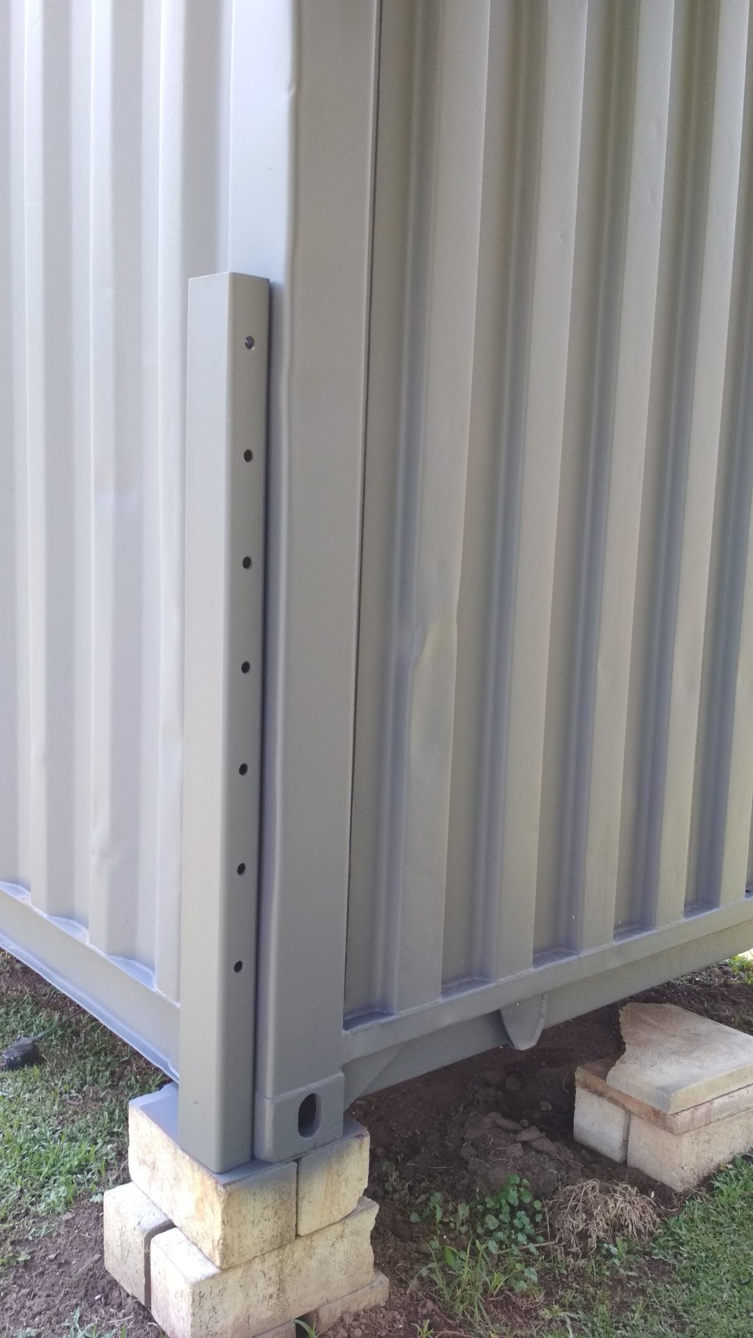 Once all the spray-painting was finished it was time to fit it back onto the container and put them to use. I’ll add a section here shortly on how I got the shipping container jacked up so that I could adjust the legs. Otherwise, here are some pictures of the process to make the adjustable legs.