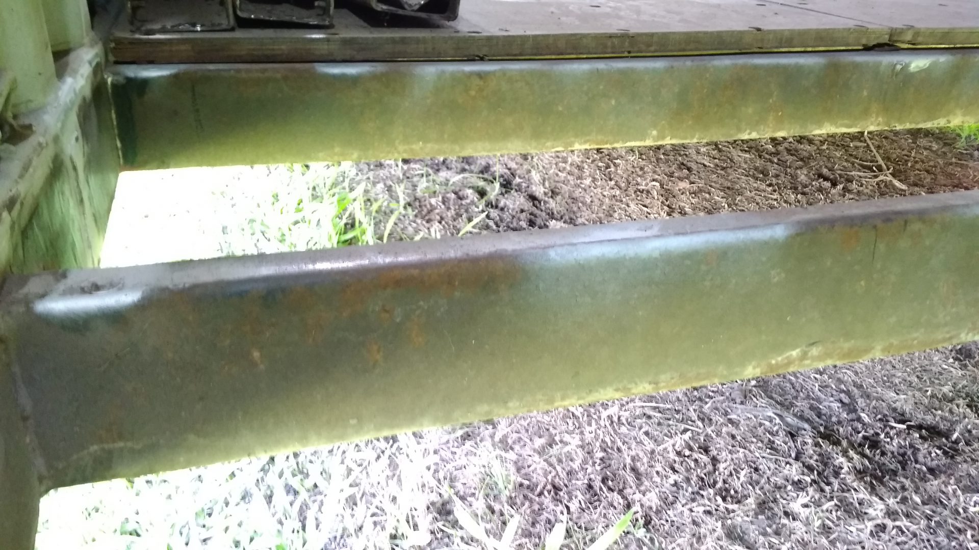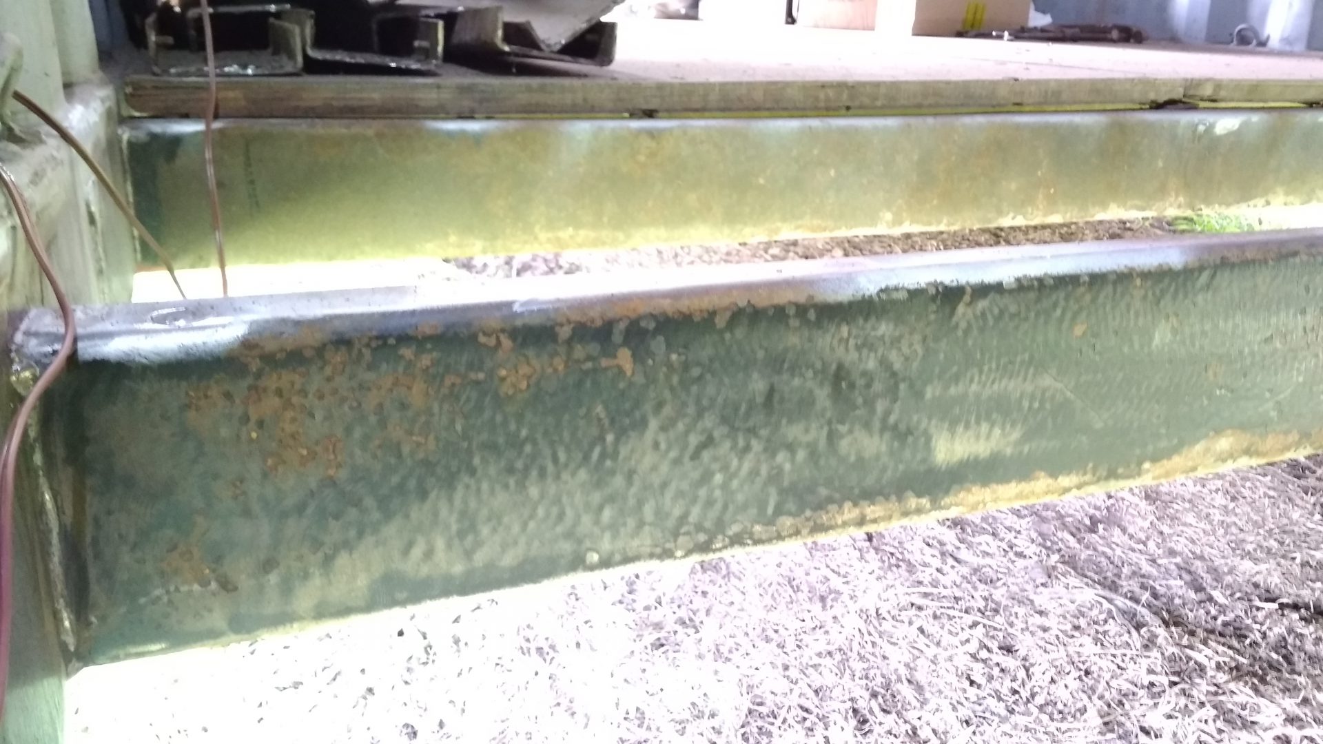 I’m really glad I took the time to clean up all the joists. A lot of them are bent underneath from the container being moved around, and most were obviously very scratched underneath. Where they are bent and scratched some rust had formed. Although the rust was not bad considering it’s age, I’ve made sure it’s going to last much longer now.
