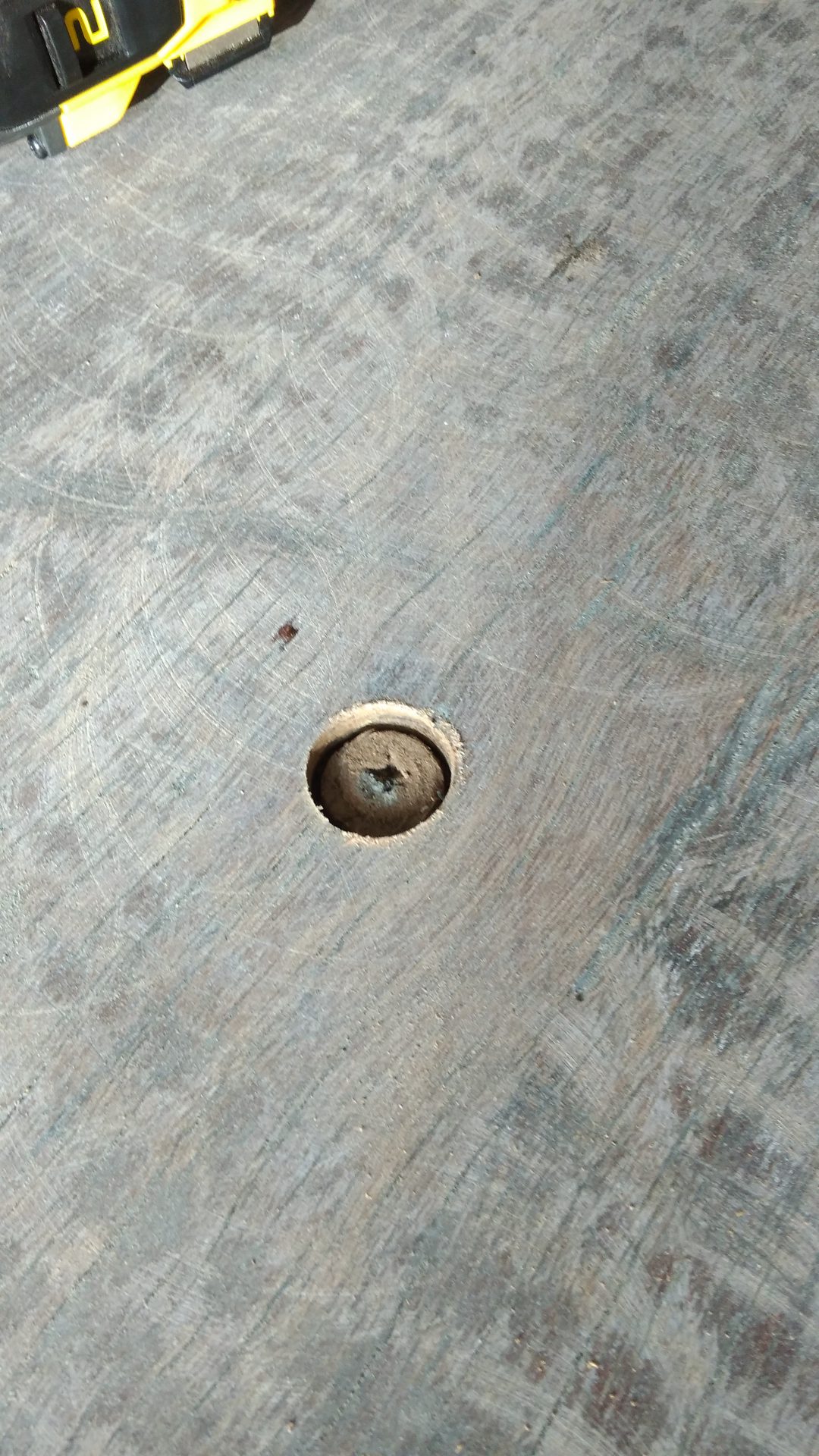 Removing the floorboards is no small operation. There are 362 screws holding them in place. And with screw heads that are stripped, damaged and not been replaced for 18 years, it really is a hard work. After a bit of Googling and YouTube videos, I found an idea from someone who used a holesaw to separate the screws from the wood. It leaves a neat hole that hopefully we can fill in with a dowel. It also leaves the screws still in the joist, which are easy to then grind off.