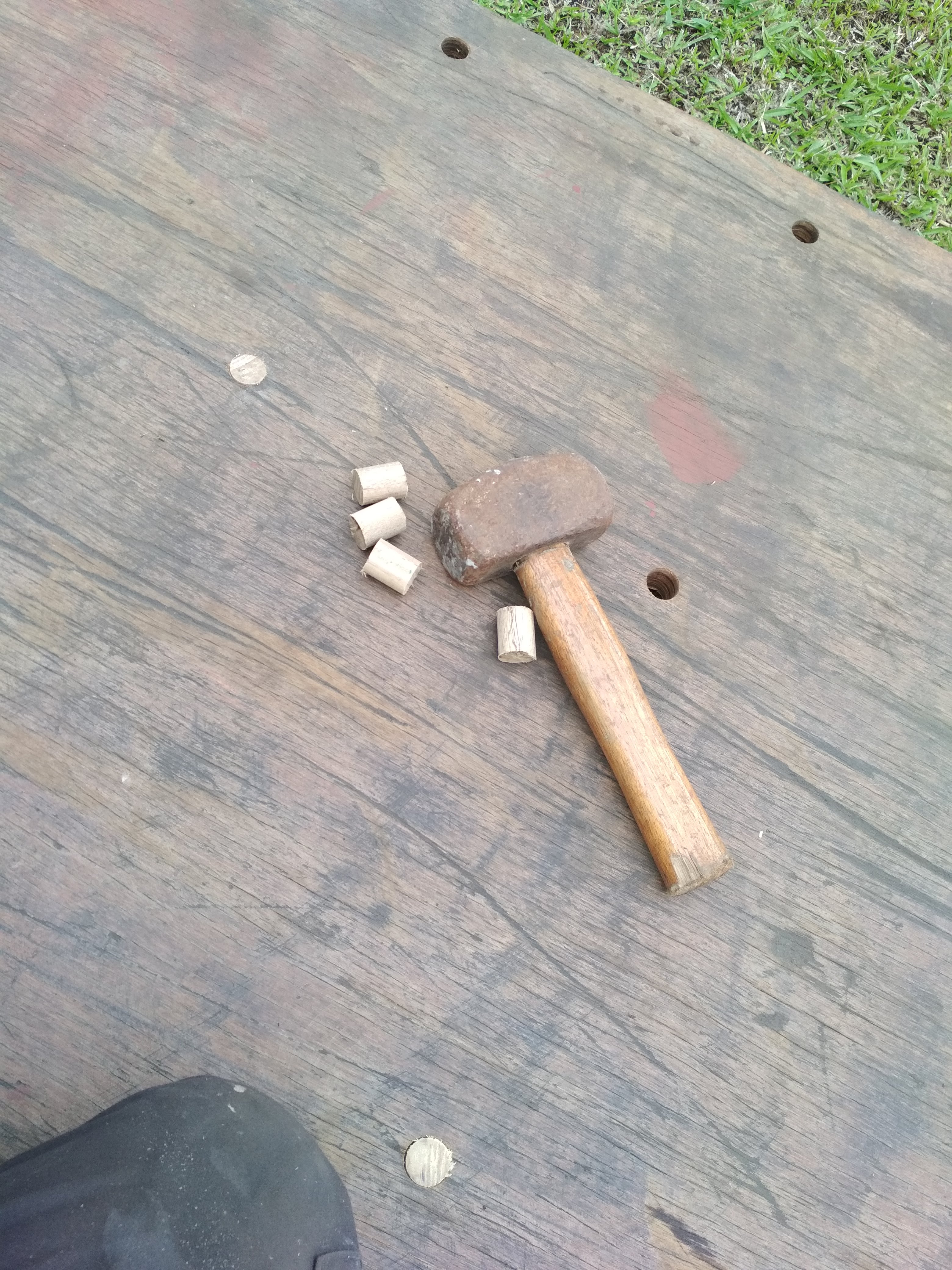 - Broom Handles 🙂 – I hit a luck when the holes I had drilled around the original screws in the floorboard turned out to be the exact size of a wooden broom handle. So I just cut the broom handles up (30mm lengths) and hammered them into those holes. Perfect tight fit!! (See the gallery above)
