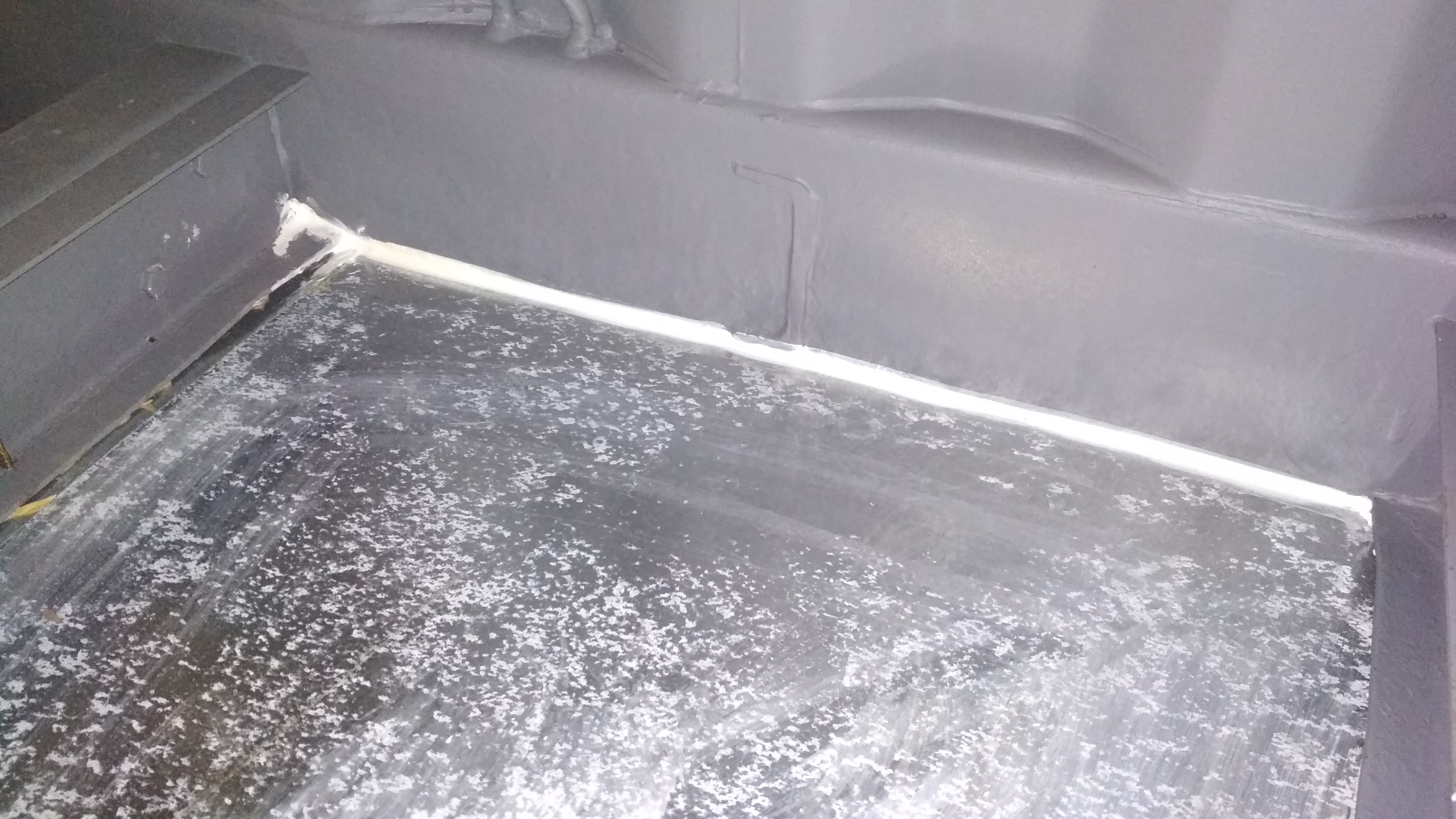 The first thing I did after spraying was to close in the space between the joists. I did this by screwing some galvanized sheeting from underneath and sealing all the edges and joins of the sheeting.