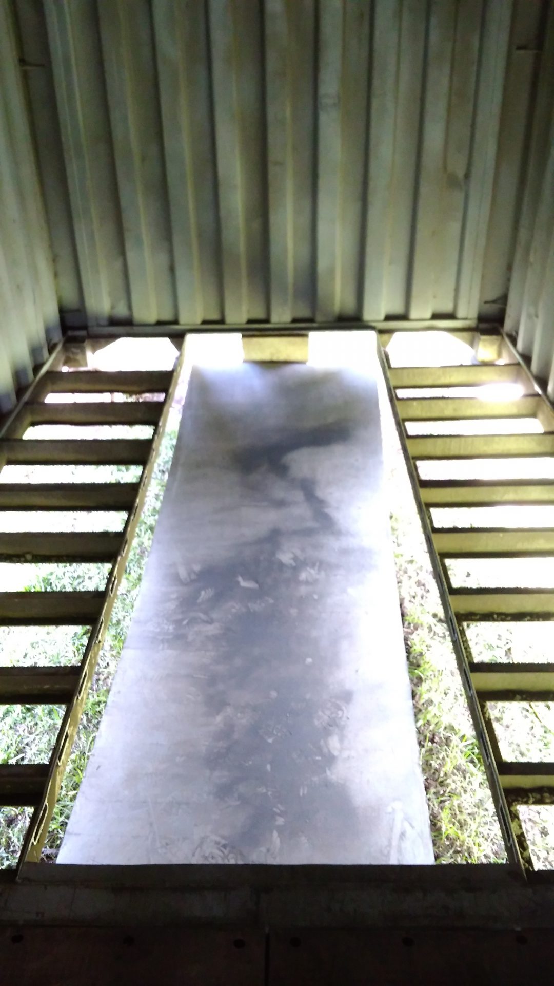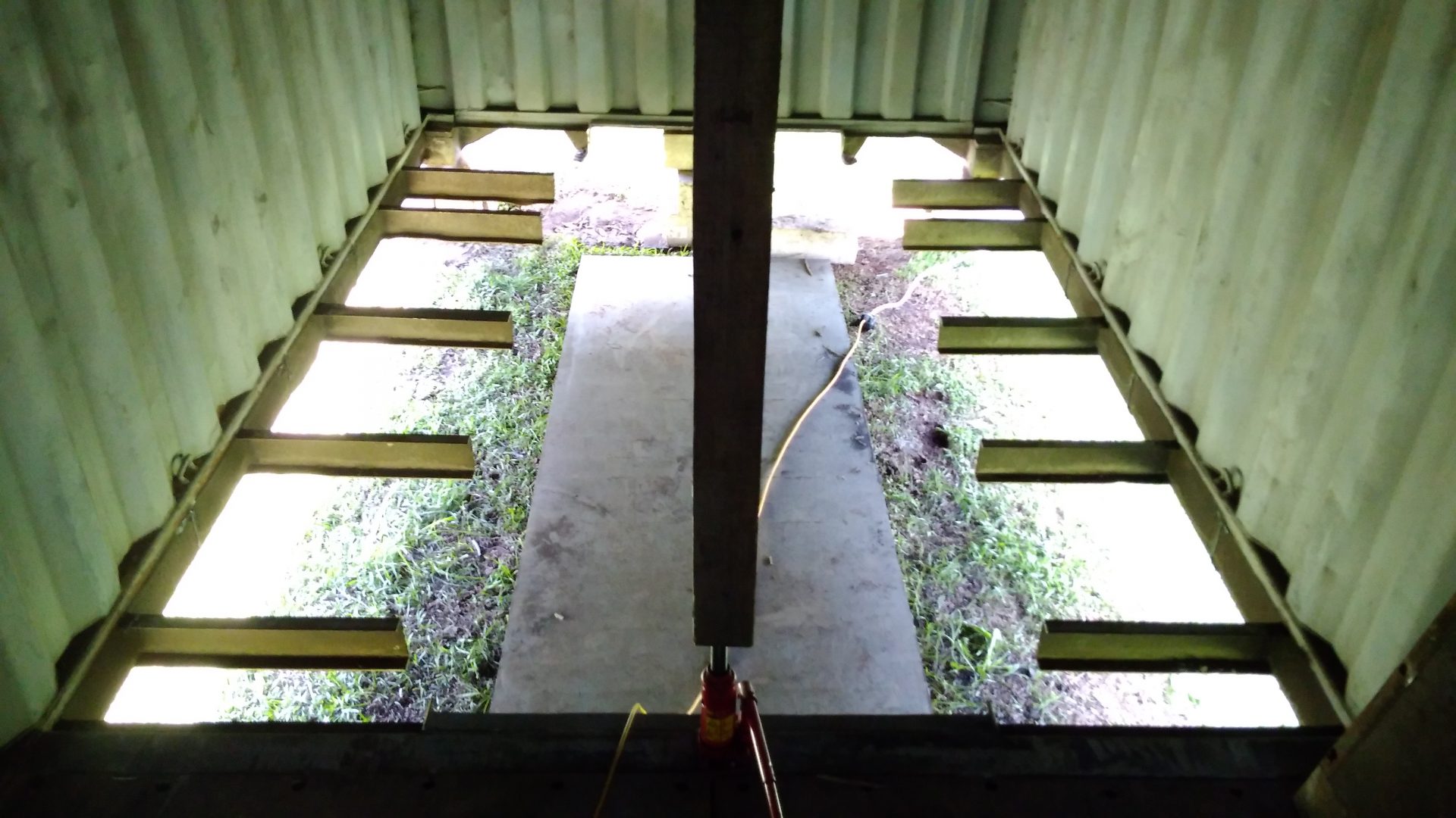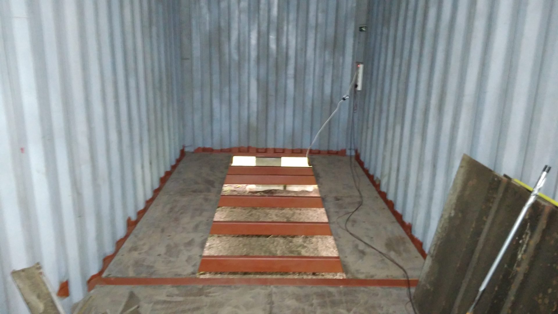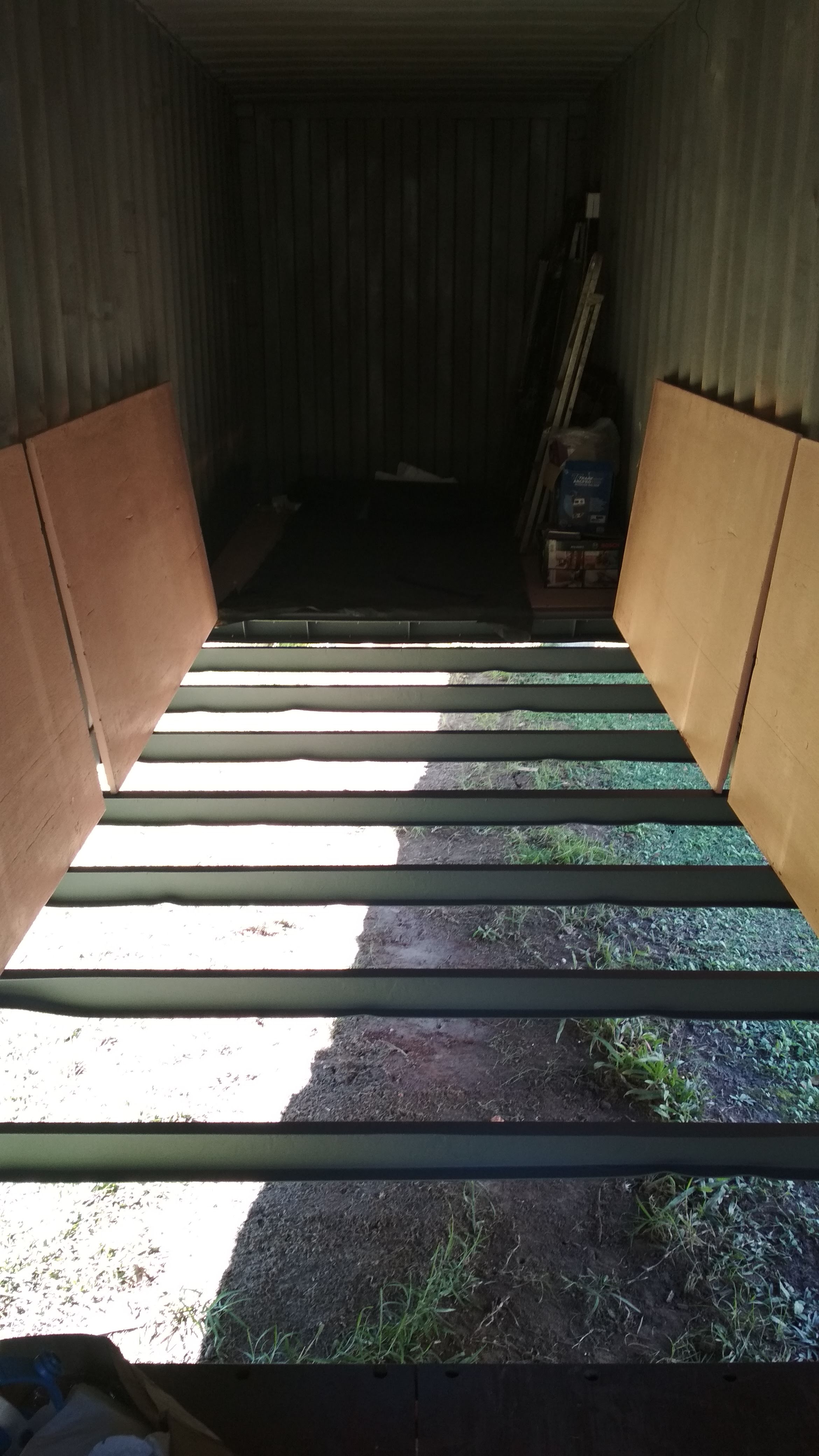 So we all know what the flooring in a container looks like. It is made up of plywood made from a very specific type of hardwood. This ply is also especially treated to prevent infestation and weathering. Considering my container is 18 years old, the floorboards are in very good condition. Unless they were replaced at some time, but I don’t think so.